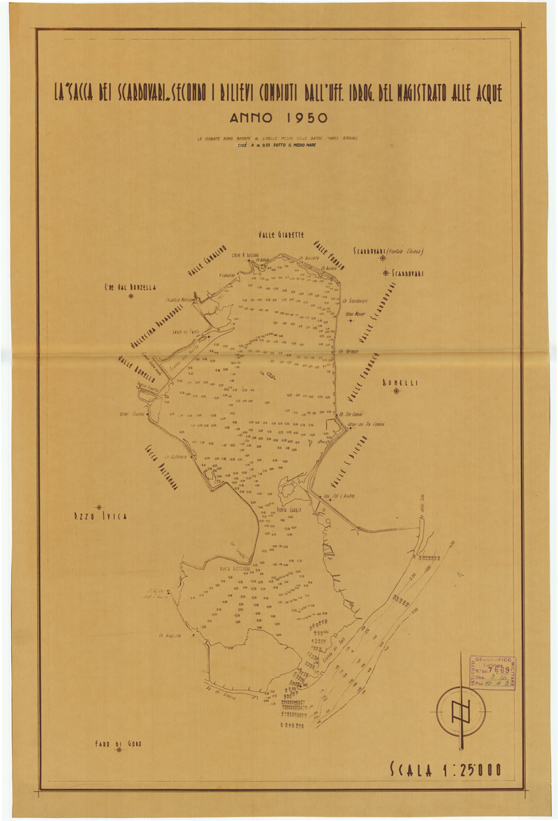 LA SACCA DEI SCARDOVARI SECONDO I RILIEVI COMPIUTI DALL'UFF. IDROGRAFICO DEL MAGISTRATO DELLE ACQUE - ANNO 1950