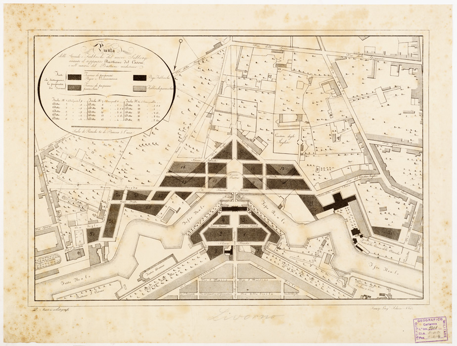 LIVORNO - PIANTA DELLE STRADE E FABBRICHE DEL NUOVO SUBBORGO AVANTI IL SOPPRESSO BASTIONE DEL CASONE E NELL'INTERNO DEL BASTIONE MEDESIMO