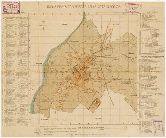 "Carta su tela. Rappresentazione orografica planimetrica. Ed. Stab. Tip. Giovanni Paternolli - Gorizia."