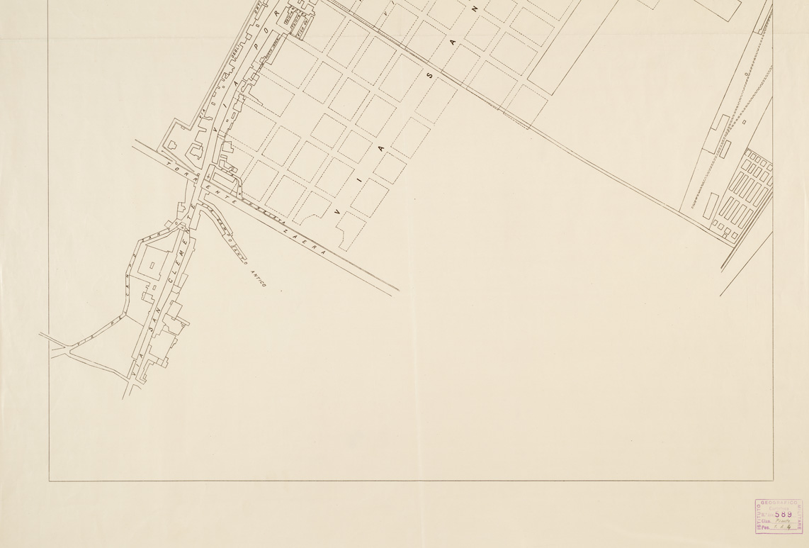 "Scala 1:2.000. Dimensioni m.0,65x0,80 (margine riquadro) per foglio. Riproduzione in 6 fogli eseguita dall' I.G.M. di Firenze nel 1909 tratta da una copia cianografica di provenienza non precisata."