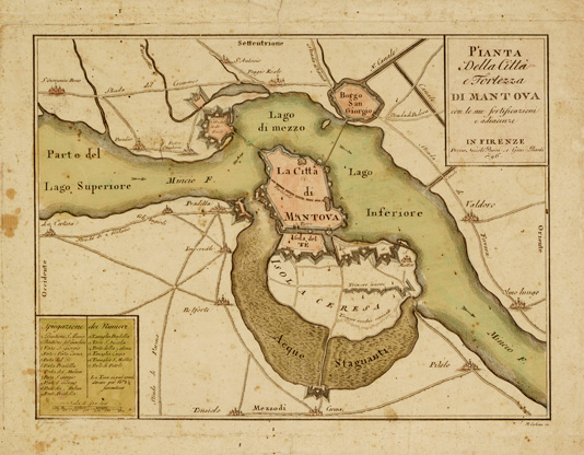 PIANTA DELLA CITTA'E FORTEZZA DI MANTOVA CON LE SUE FORTIFICAZIONI E ADIACENZE.