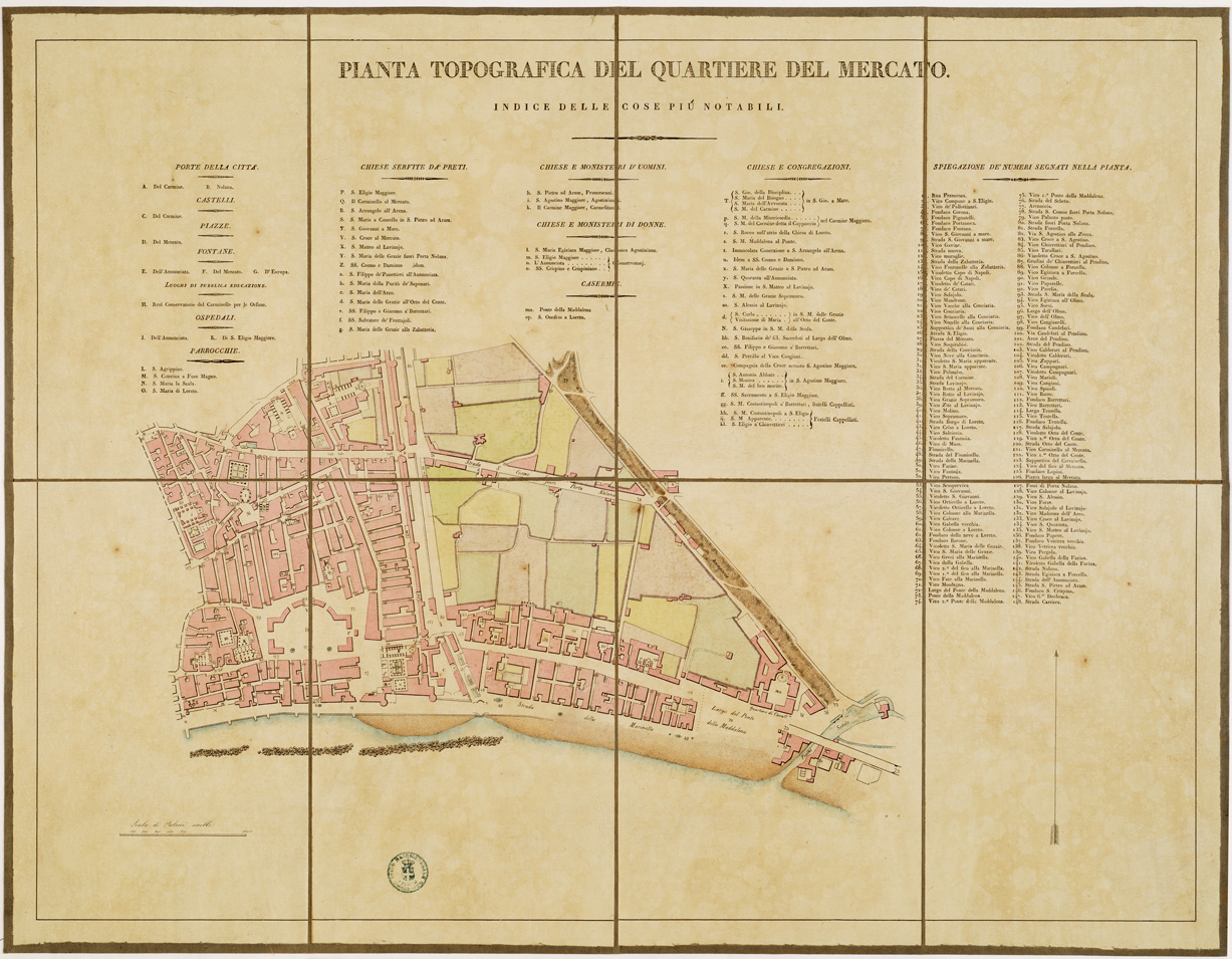 PIANTA DEI QUARTIERI DELLA CITTA' DI NAPOLI - PIANTA TOPOGRAFICA DEL QUARTIERE DEL MERCATO