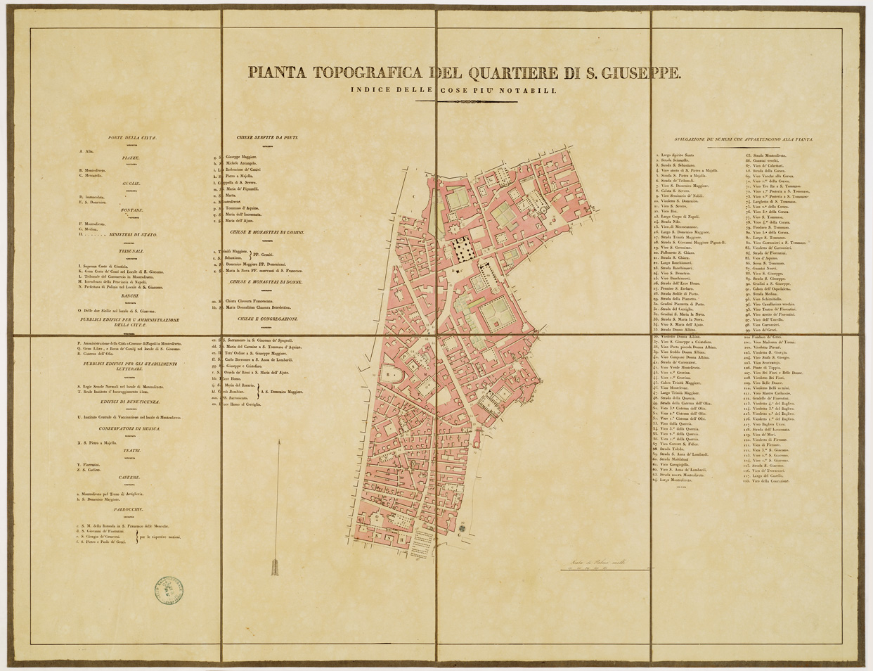 PIANTA DEI QUARTIERI DELLA CITTA' DI NAPOLI - PIANTA TOPOGRAFICA DEL QUARTIERE S. GIUSEPPE