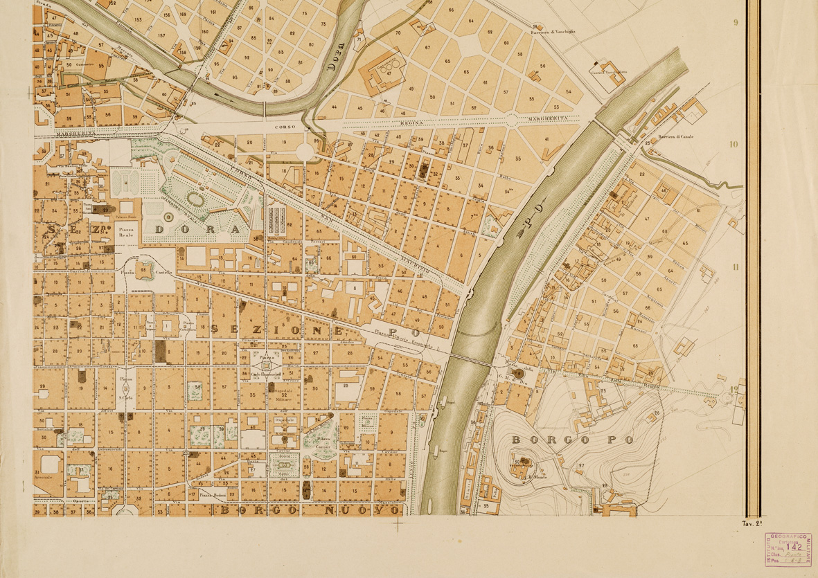 PIANO GENERALE DELLA CITTA' DI TORINO COLL'INDICAZIONE DEI PIANI REGOLARI DEGLI INGRANDIMENTI, COMPILATO PER CURA DELL'UFFICIO TECNICO MUNICIPALE. ESEGUITO NELLA LITOGRAFIA FRATELLI DOYEN. TORINO, NELL'ANNO 1884. G. KIRCHMAYR