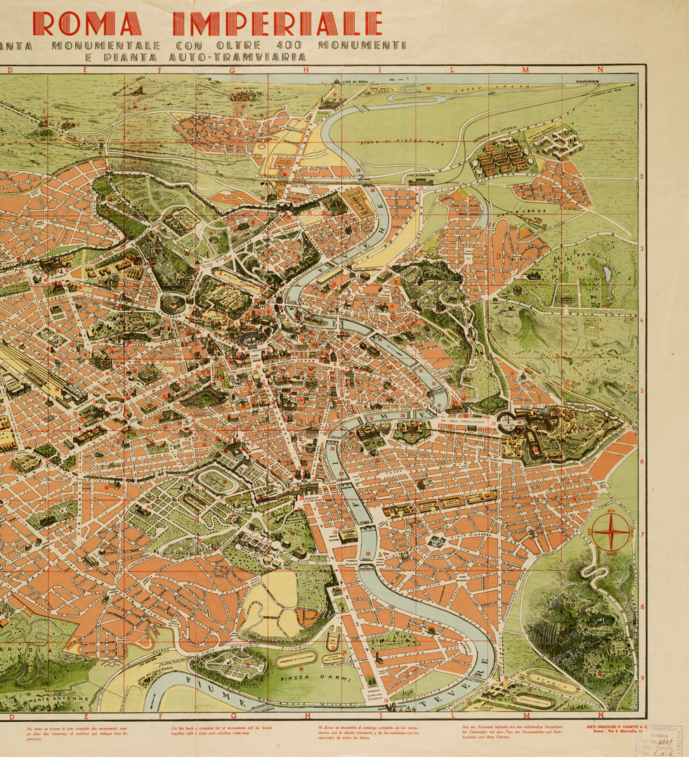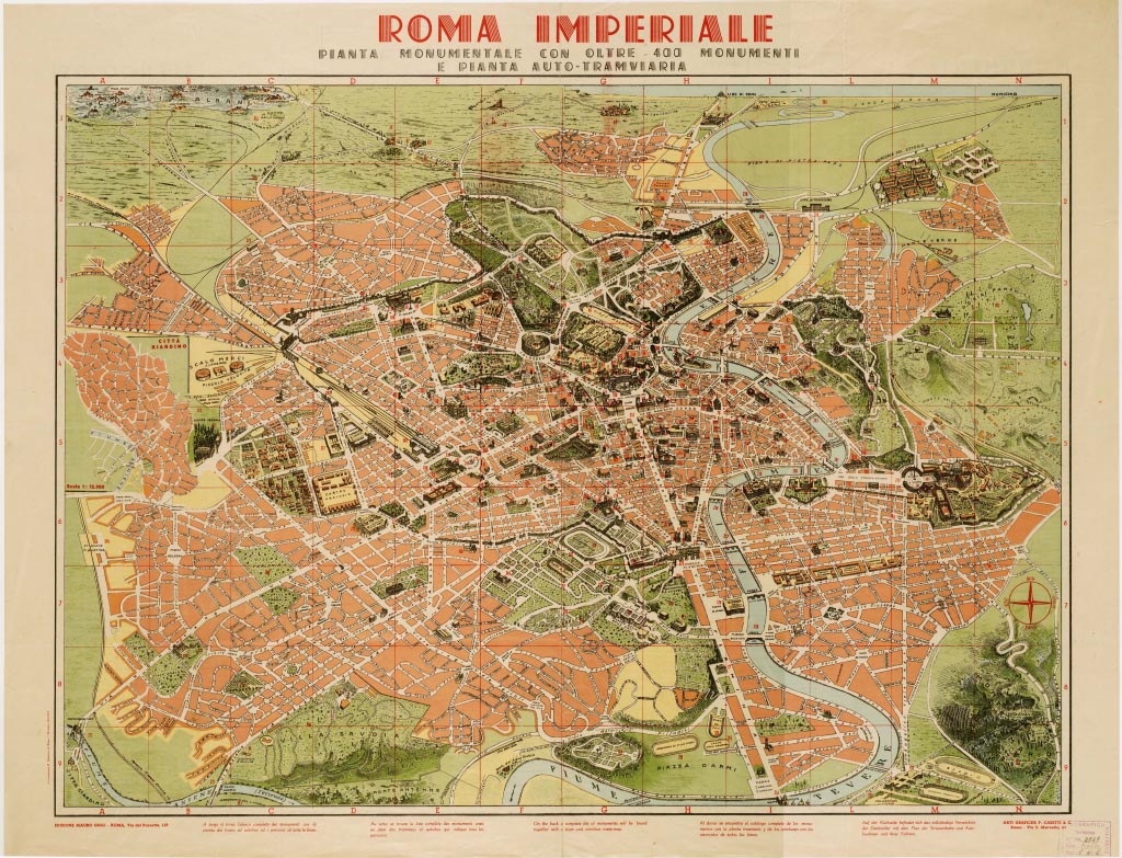 ROMA IMPERIALE - PIANTA MONUMENTALE CON OLTRE 400 MONUMENTI E PIANTA AUTO -TRAMVIARIA - Fronte e Retro