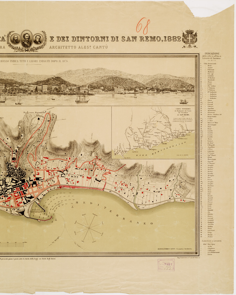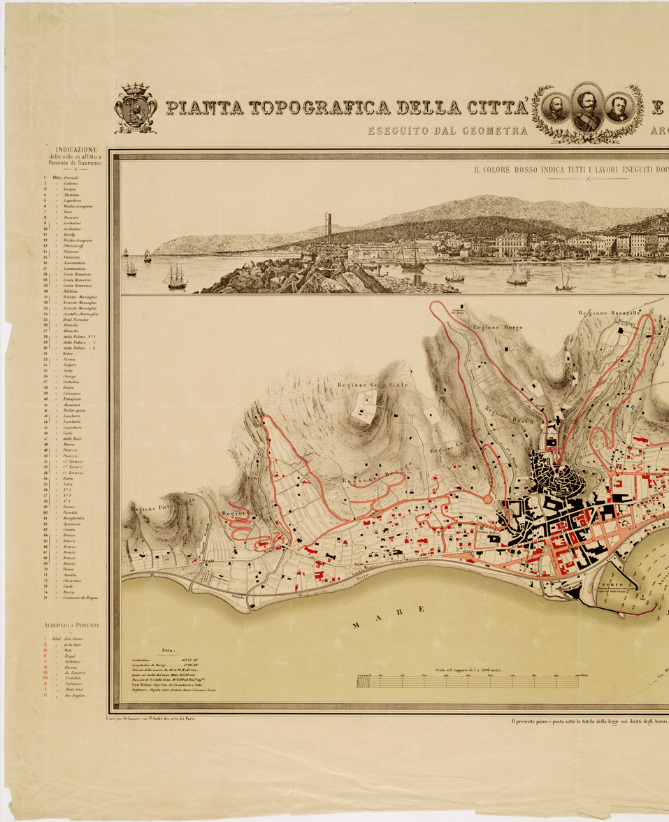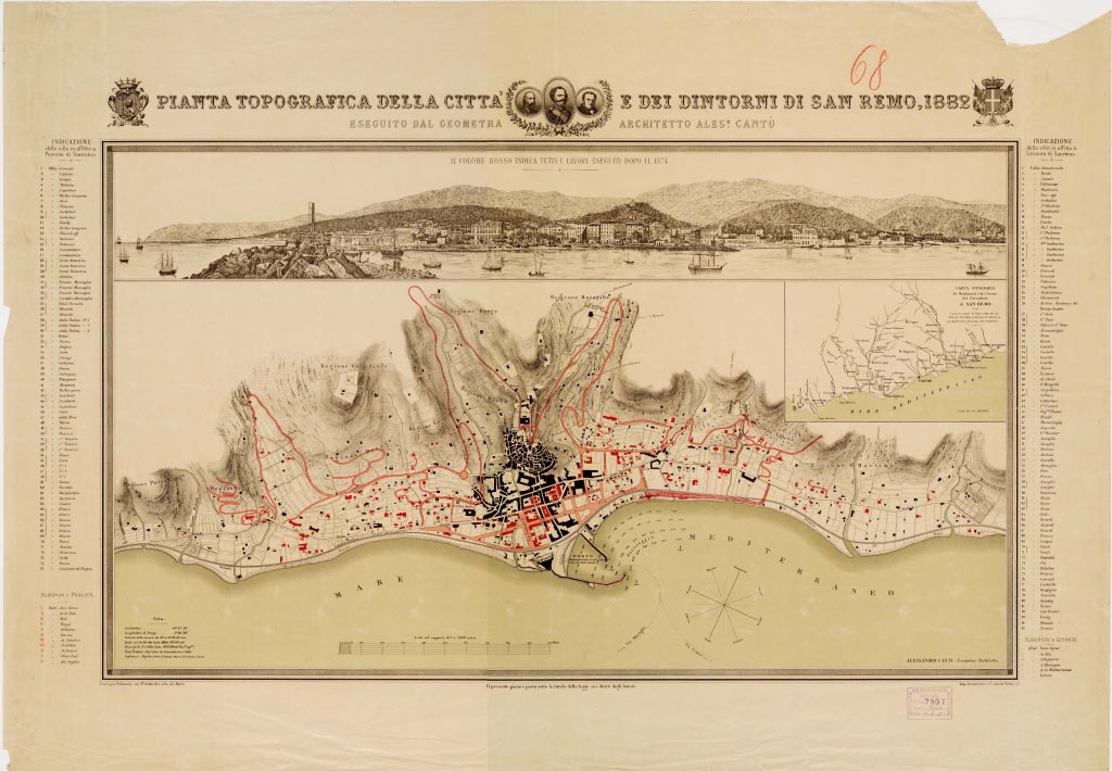 PIANTA TOPOGRAFICA DELLA CITTA' E DEI DINTORNI DI SAN REMO, 1882 ESEGUITO DAL GEOMETRA ARCHITETTO A. CANTU'