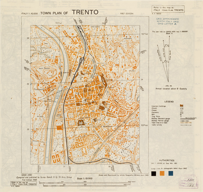 "Survey Branch H.Q. 15 Army Group. Rappresentazione orogrfica planimetrica."