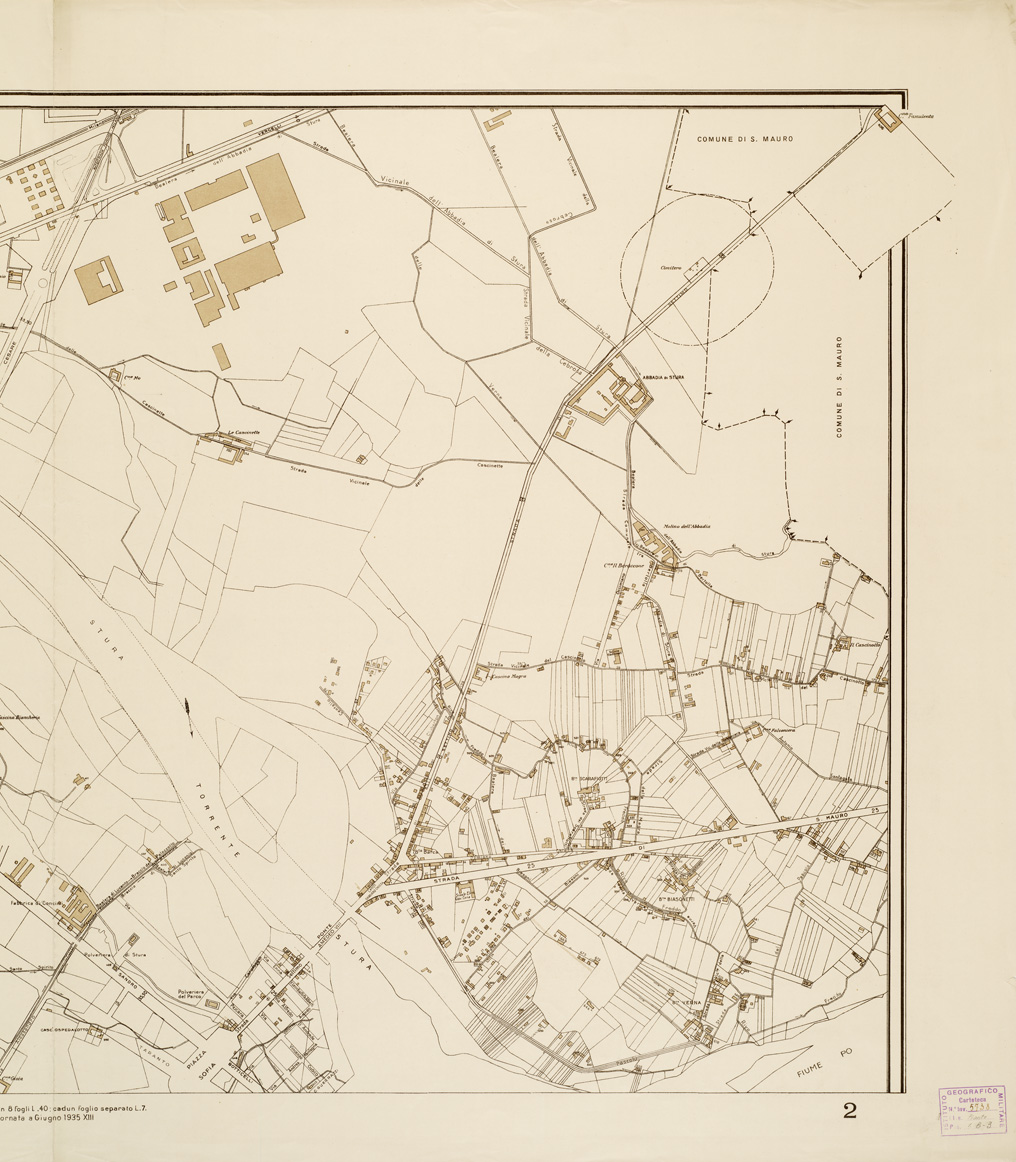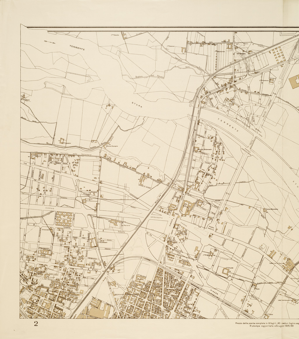 "COLL´INDICAZIONE DEI DUE PIANI REGOLATORI E DI AMPLIAMENTO RISPETTIVAMENTE DELLA ZONA PIANA (VIGENTE PER LEGGE 5 APRILE 1908 E R. DECRETO 15 GENNAIO 1920) E DELLA ZONA COLLINARE (VIGENTE PER DECRETO LUOG. 10 MARZO 1918) AGGIORNATI COLLE VARIANTI DELIBERATE SUCCESSIVAMENTE SINO A GIUGNO 1935 - XIII. COMPILATA DAL SERVIZIO TECNICO MUNICIPALE DEI LAVORI PUBBLICI. Carta composta da 8 fogli più il quadro d'unione. Nel foglio n. 8 vi sono i segni convenzionali. Rappresentazione orografica planimetrica. S. A. Lit. Doyen-Marchisio, Torino."