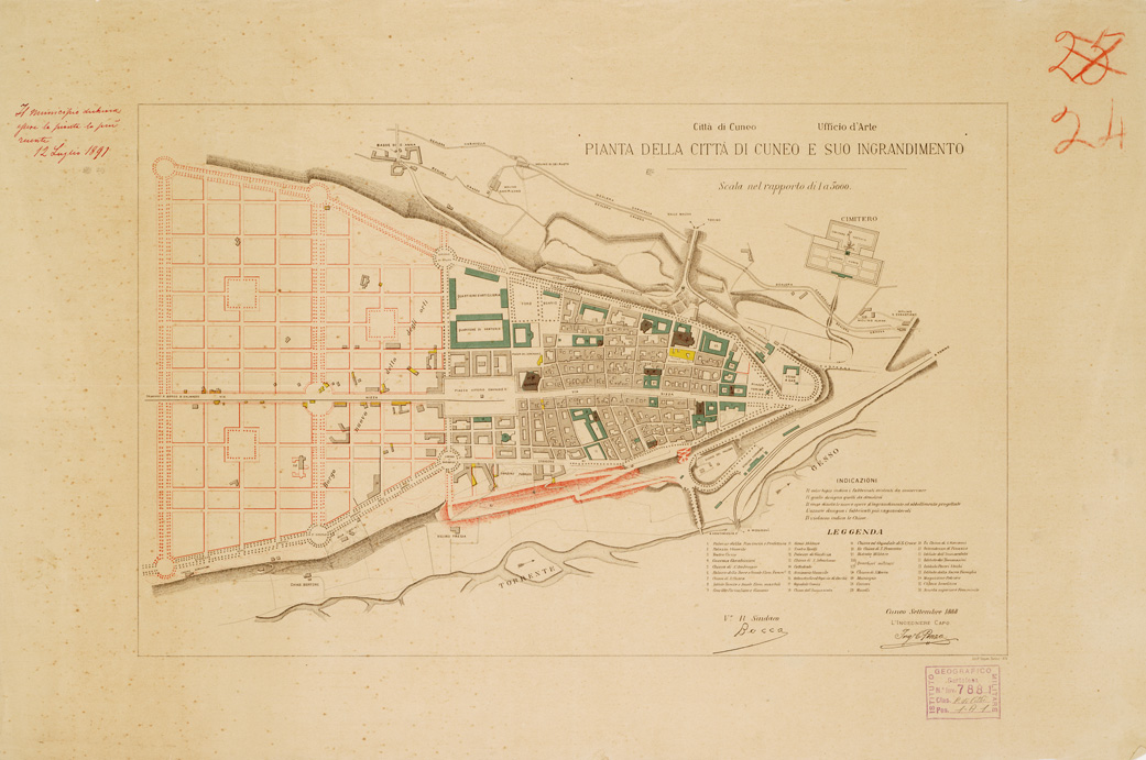 PIANTA DELLA CITTA' DI CUNEO E SUO INGRANDIMENTO