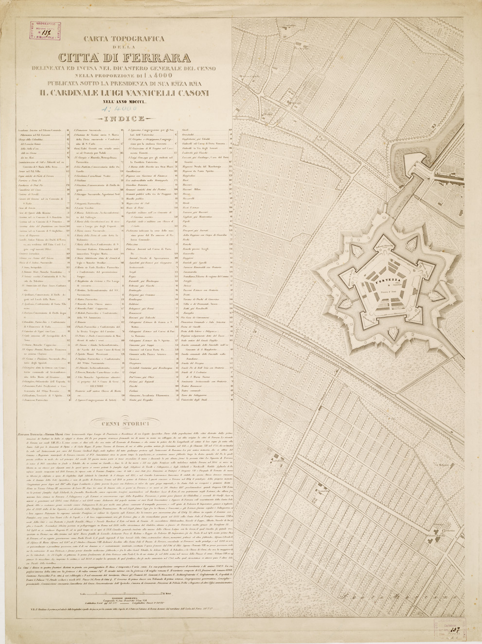 CARTA TOPOGRAFICA DELLA CITTA' DI FERRARA... - Foglio 1