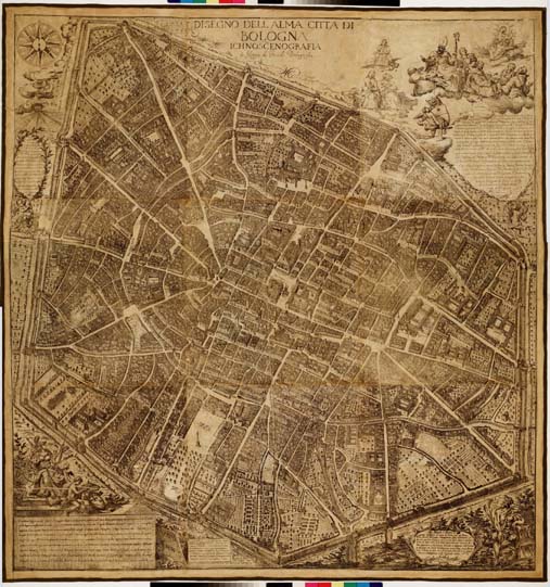 DISEGNO DELL'ALMA CITTA' DI BOLOGNA ICHNOSCENOGRAFIA DI FILIPPO DE GNUDI BOLOGNESE