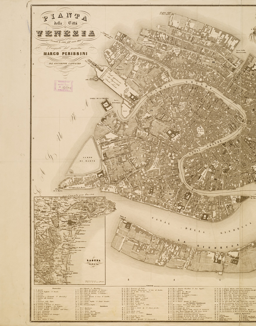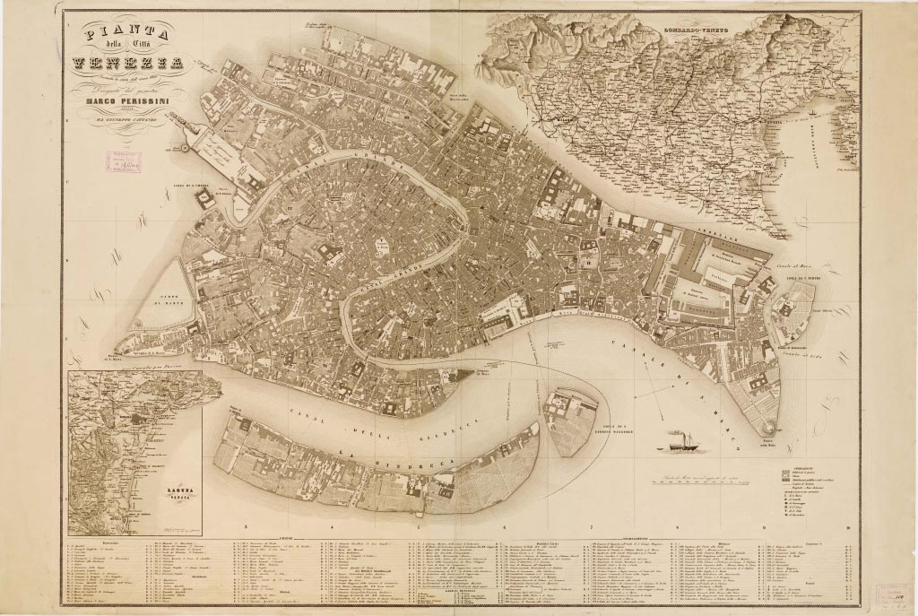 PIANTA DELLA CITTA' DI VENEZIA SECONDO LO STATO DELL'ANNO 1866. DISEGNATA DAL GEOMETRA MARCO PERISSINI. INCISA DA GIUSEPPE CATTANEO