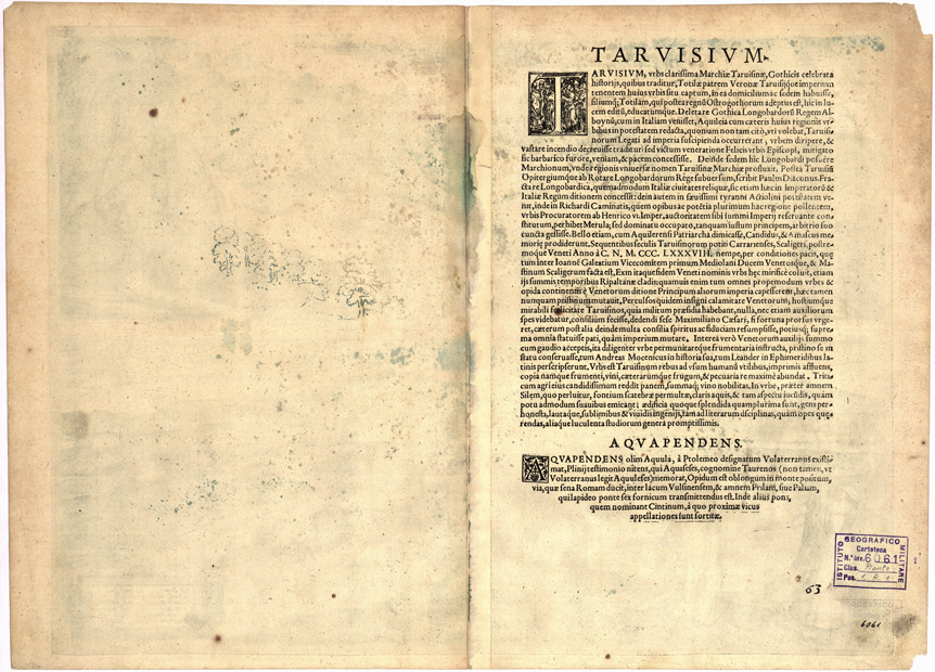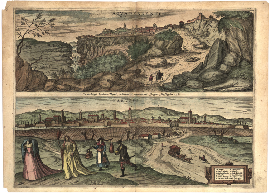 AQUAPENDENTE ET TARVISI EX ARCHETYPO LODOVICI TOEPUT EX ARCHETYPO LODOVICI TOEPUT DELINEAVIT ET COMMUNICAVIT GEORGIUS HOUFNAGLIUS