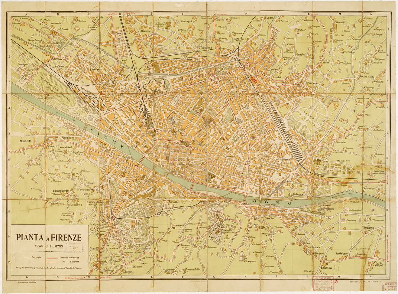 NUOVA PIANTA DELLA CITTA' DI FIRENZE STAB. LIT. TIP. GIACCONE E MORELLI. ED. DEL RE. FIRENZE, 1931