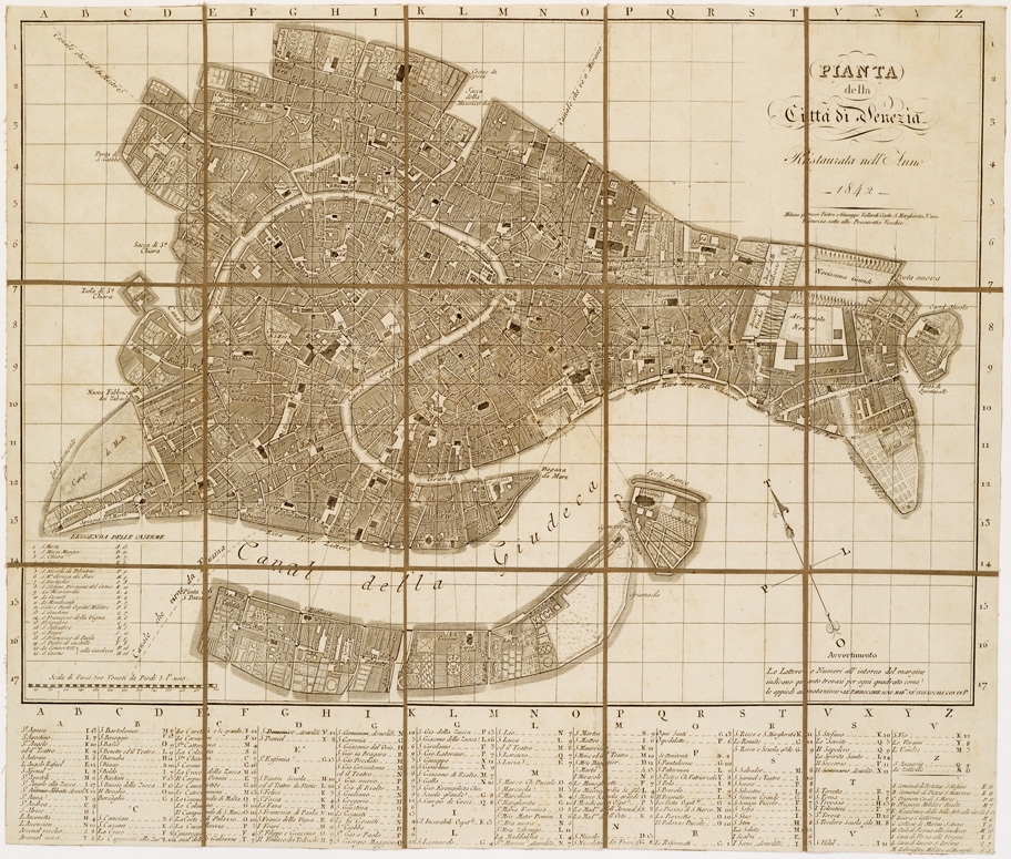 PIANTA DELLA CITTA' DI VENEZIA RISTAURATA NELL'ANNO 1842. MILANO PRESSO PIETRO E GIUSEPPE VALLARDI, ECC., ECC.