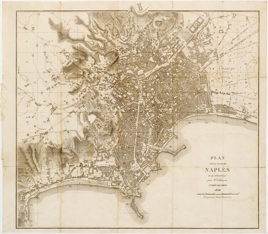 PLAN DE LA VILLE DE NAPLES ET SES INDICATIONS PAR MR. LE CHANOINE ANDRE DE JORIO. NAPLES DE L'IMPRIMERIE ET PAPETERIE DU FIBRENE. (Napoli)