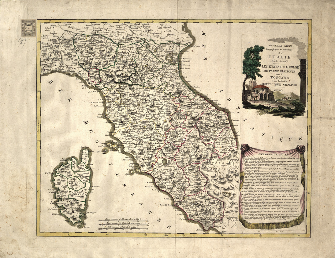 NOUVELLE CARTE GEOGRAPHIQUE ET HISTORIQUE DE L'ITALIE - LES ETATS DE L'EGLISE, DE PARME-PLAISANCE AVEC LA TOSCANE ET UNE PARTIE DE LA REPUBLIQUE CISALPINE - FOGLIO 2
