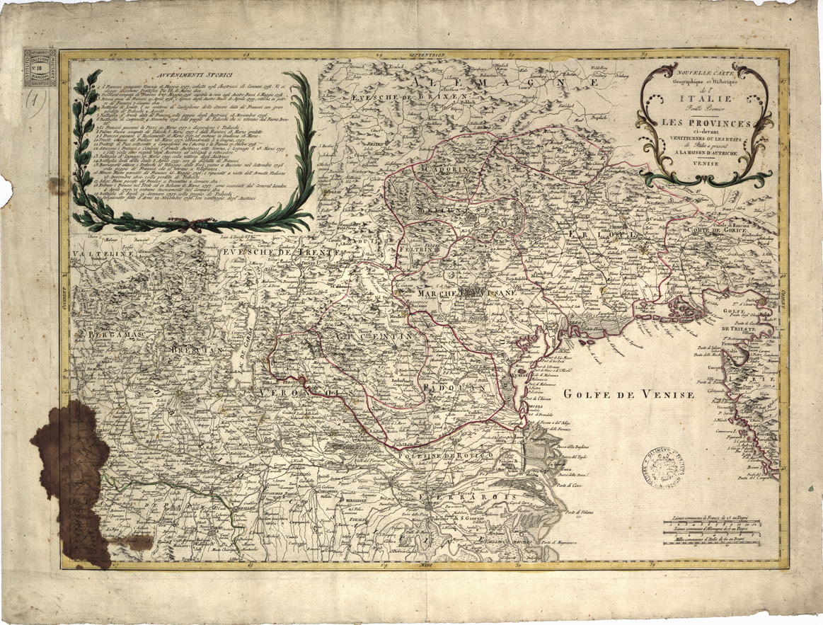 NOUVELLE CARTE GEOGRAPHIQUE ET HISTORIQUE DE L'ITALIE VENEZIA OU LES ETATS DE L'ITALIE A PRESENT A LA MAISON D'AUTRICHE - LES PROVINCES CI DEVANT VENITIENNES - FOGLIO 1