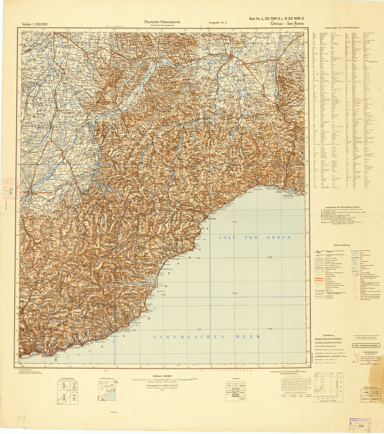 ITALIEN UND GRENZGEBIETE - GENUA-SAN REMO NR.L32 SW 4 K 32 NW 2