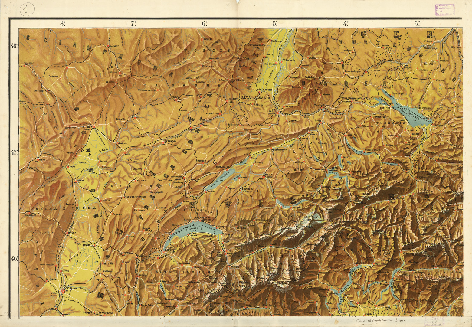 "Autore Pio Galli.Editore U.Borzino- Milano. Rappresentazione orografica a sfumo."