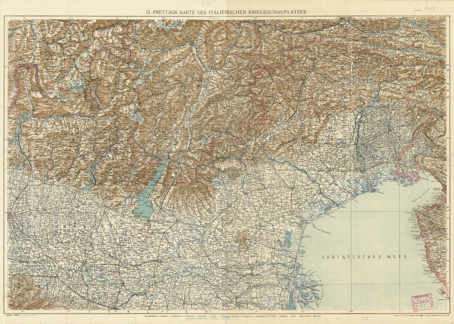 "Autore G.Freytags-Vienna.Rappresentazione orografica a sfumo."