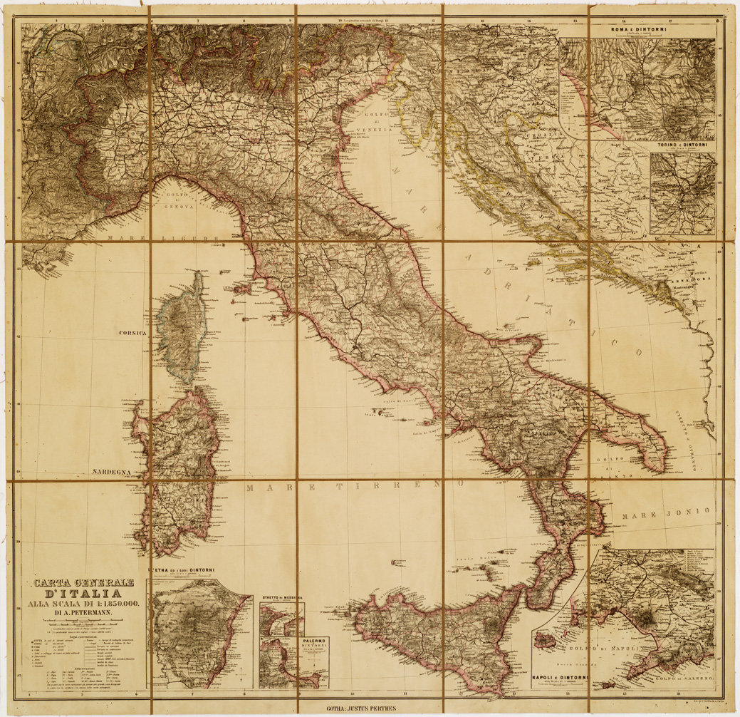 L´Italia, a causa delle particolari vicende storiche, solo dopo il 1870 formulò un progetto cartografico unitario.