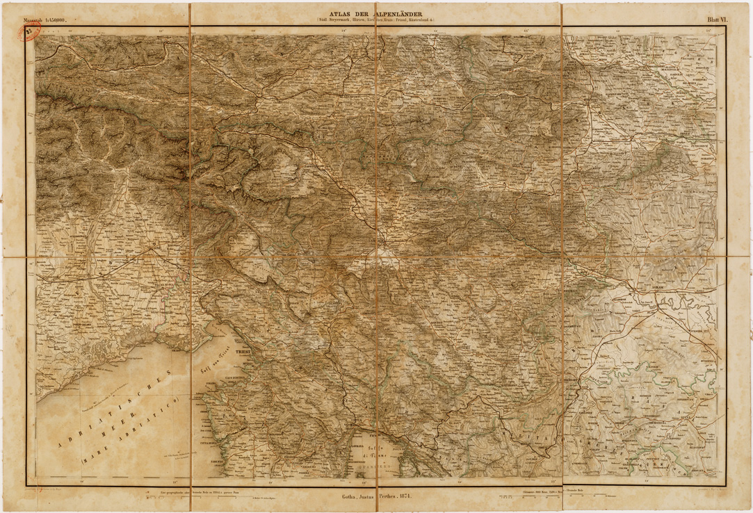 "...STEYERMARK ILLIRIEN FRIAUL KUSTENLAND Autore Justus Perthes.Rappresentazione orografica a tratteggio "