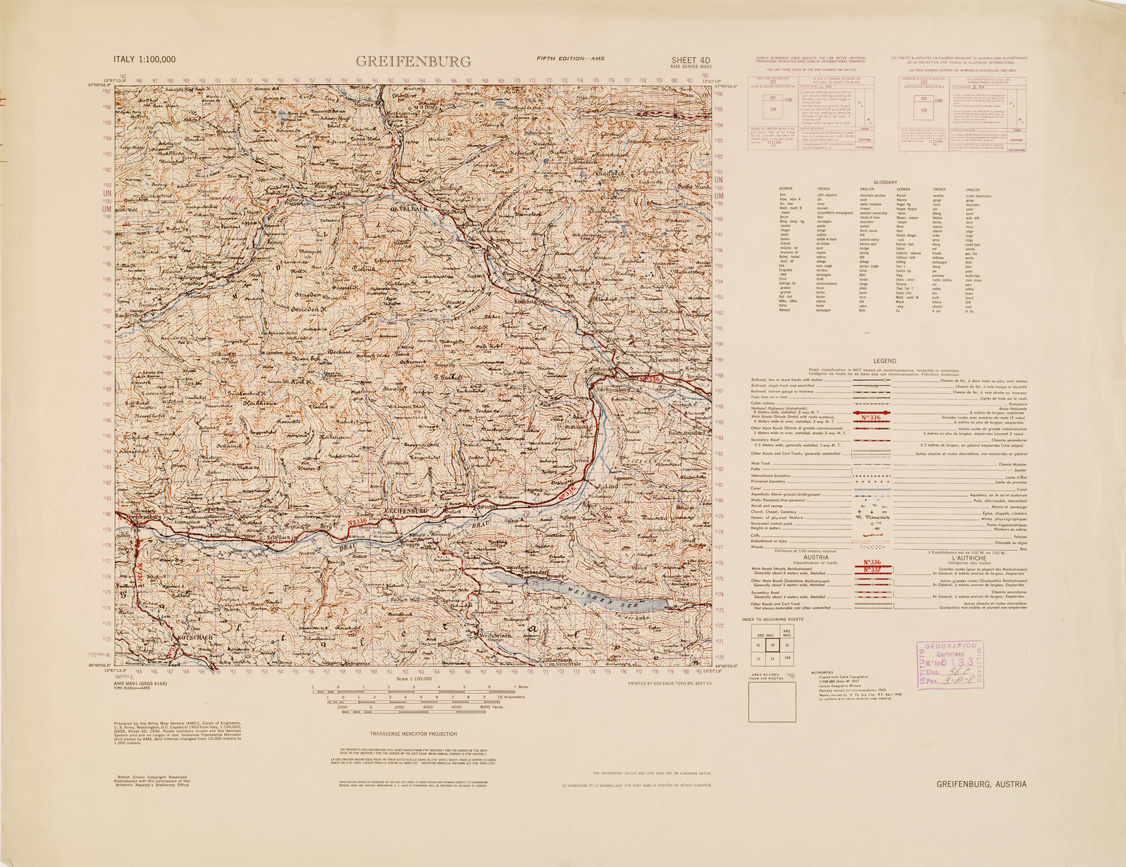 Per quanto concerne i lavori di allestimento cartografico, l´epoca successiva alla 2^ guerra mondiale può essere distinta in due periodi: quello del primo dopoguerra (1946-1953), durante il quale si dette inizio alla realizzazione della Carta d´Italia alla scala 1:25000 a tre colori (nero, bistro, azzurro) e quello relativo agli anni 1954-1965, caratterizzato dal compimento del rilievo alla scala 1:25000 di tutto il territorio italiano e dall´introduzione della cartografia “stanag” a 5 colori (ai tre prima ricordati si aggiungeva il rosso e il verde).