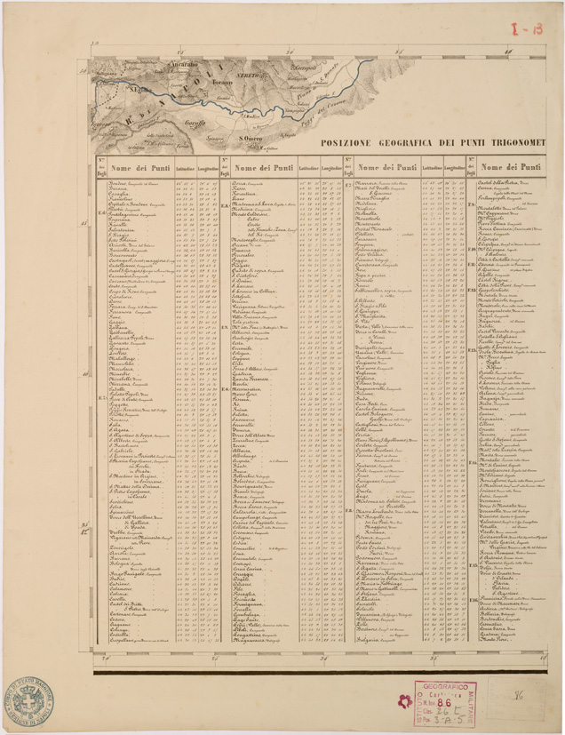 I rilevamenti topografici per la realizzazione della “Carta d´Italia&lrquo” iniziarono nel 1878: si trattava di un´opera così importante e lodevole che meritò la consapevole attenzione, non solo degli addetti ai lavori e delle categorie professionali coinvolte, ma anche delle più alte autorità del Regno.