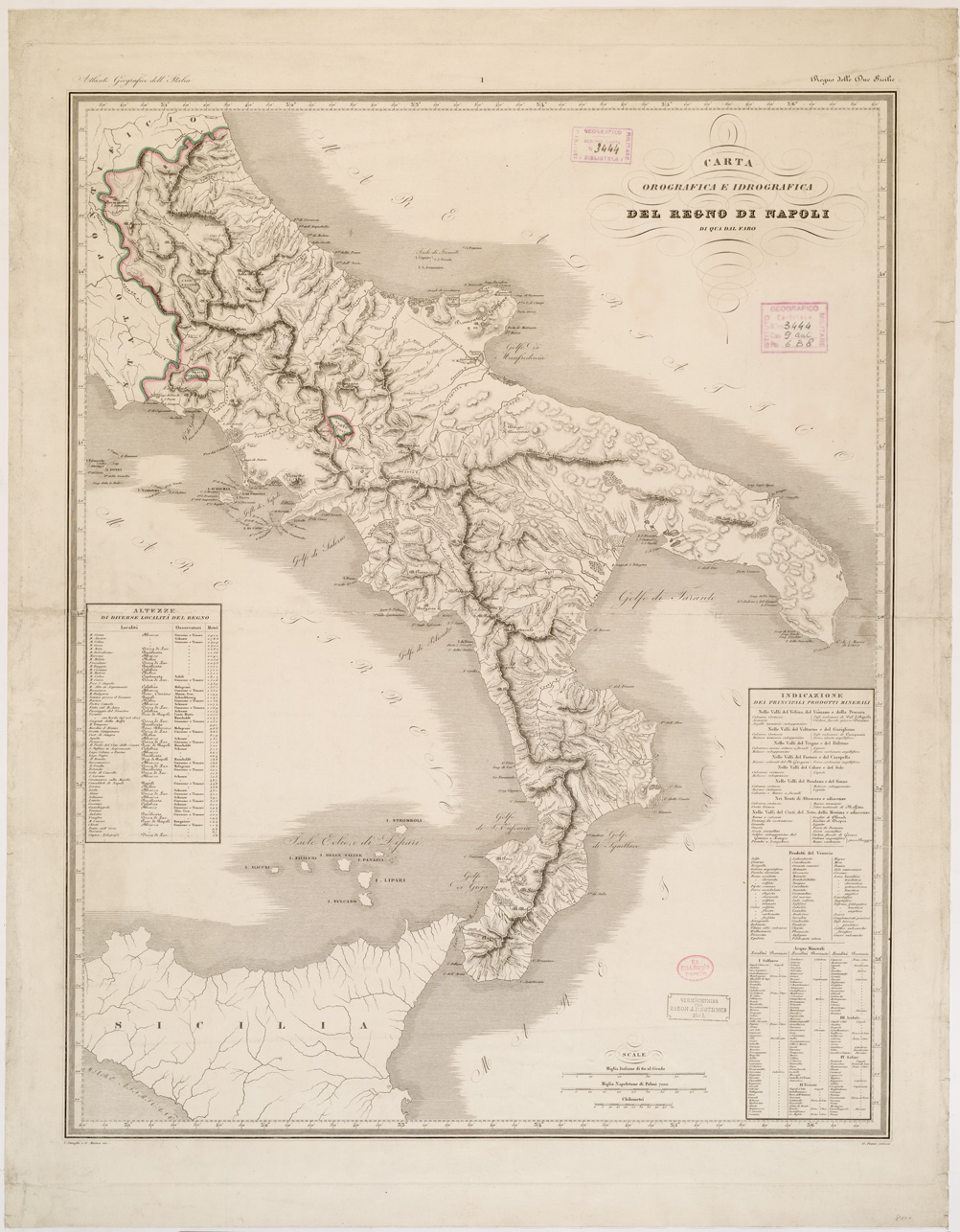 CARTA OROGRAFICA E IDROGRAFICA DEL REGNO DI NAPOLI DI QUA DAL FARO