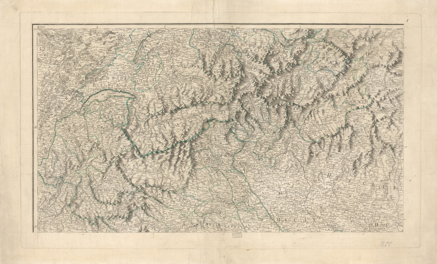 "A Paris chez le spezauche Ing. Geographe. Grafia in francese. Rappresentazione orografica a tratteggio dimostrativo prospettico. Autore M. Chanchard. Nel catalogo ragionato è stata indicata una carta molto simile a questa, essa è costituita da sei fogli montati su tela e appartiene alla collezione Bianconi N.° 31. Carta derivante da incisione su rame."