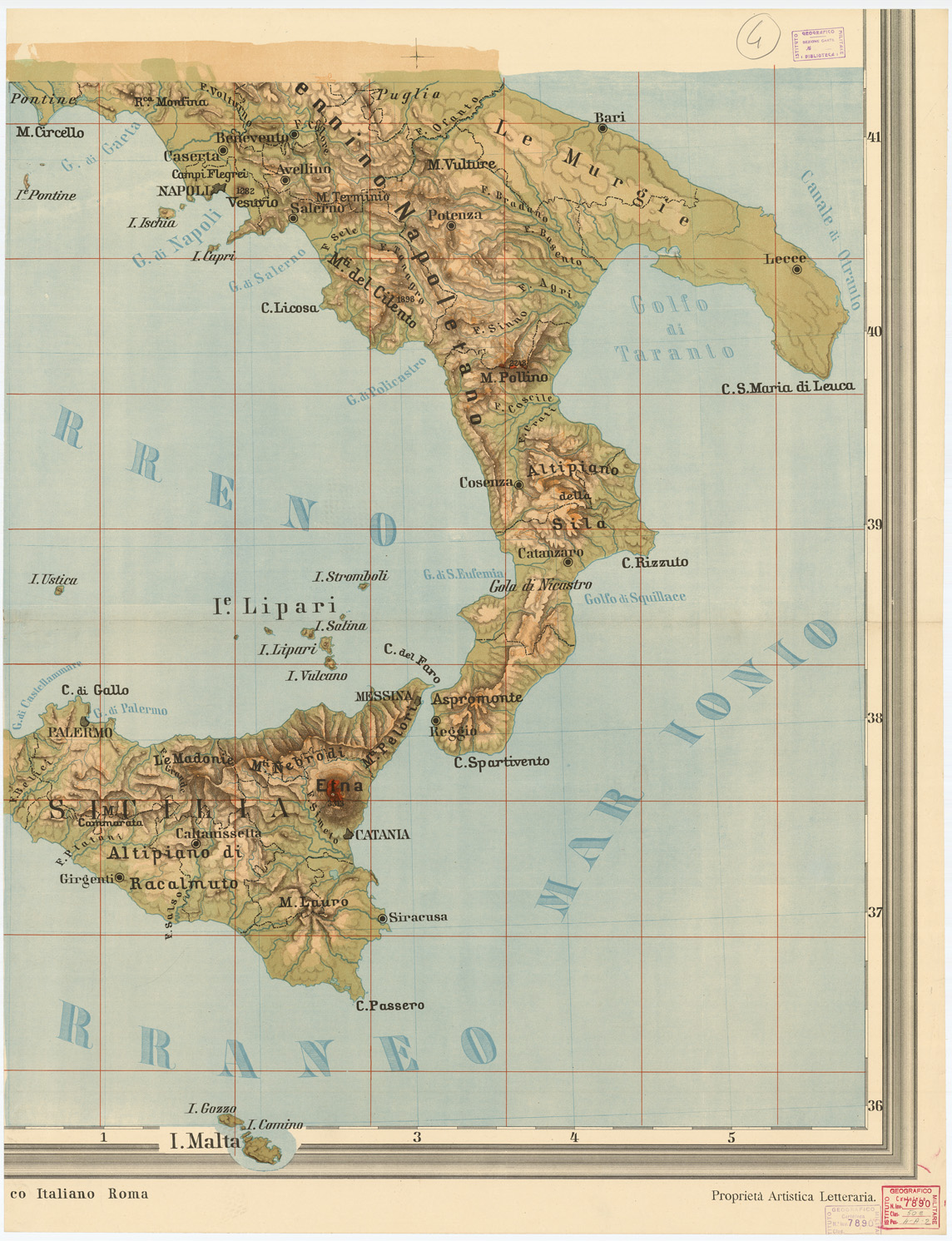 CARTA FISICA D'ITALIA PUBBLICATA DALL'ISTITUTO CARTOGRAFICO ITALIANO COL PATROCINIO DEL COMUNE DI ROMA MDCCCLXXXIX. - Foglio 4