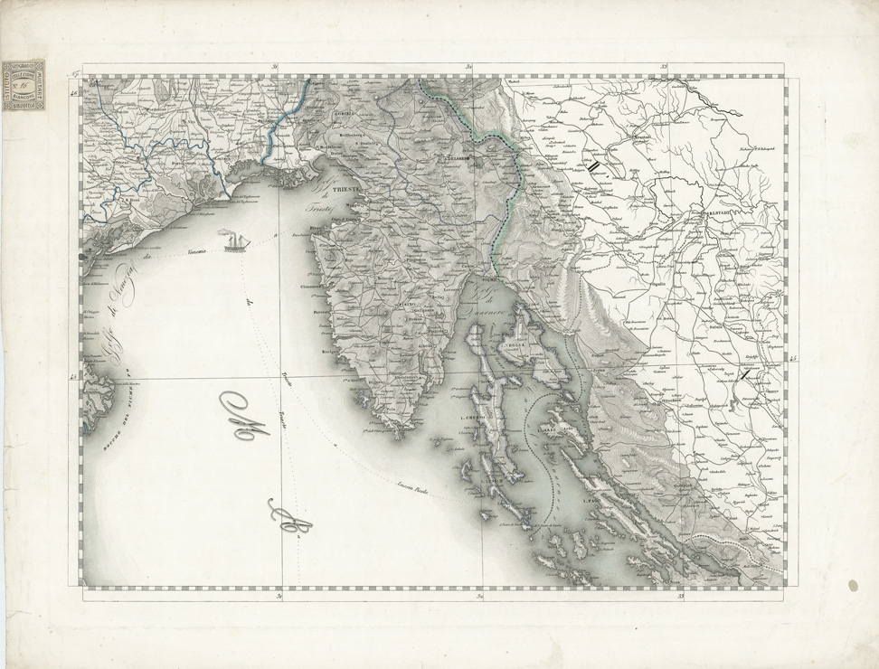 GRAN CARTA D'ITALIA DISEGNATA ED INCISA COLLA SCORTA DELLE OPERE PIU' RECENTI ED ACCREDITATE DI GEOGRAFIA PUBBLICATA PER CURA DI G. CIVELLI E COMP. ... - Foglio 7 - Trieste, Istria