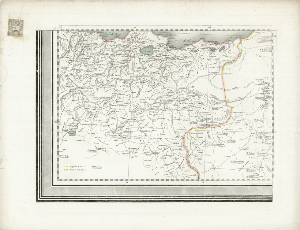 GRAN CARTA D'ITALIA DISEGNATA ED INCISA COLLA SCORTA DELLE OPERE PIU' RECENTI ED ACCREDITATE DI GEOGRAFIA PUBBLICATA PER CURA DI G. CIVELLI E COMP. ... - Foglio 25 - Algeria, Tunisia