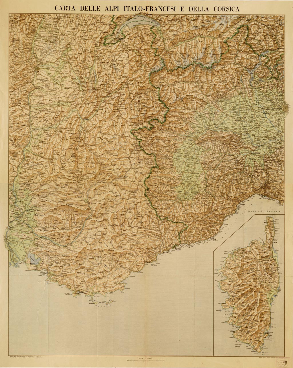 CARTA DELLE ALPI ITALO-FRANCESI E DELLA CORSICA