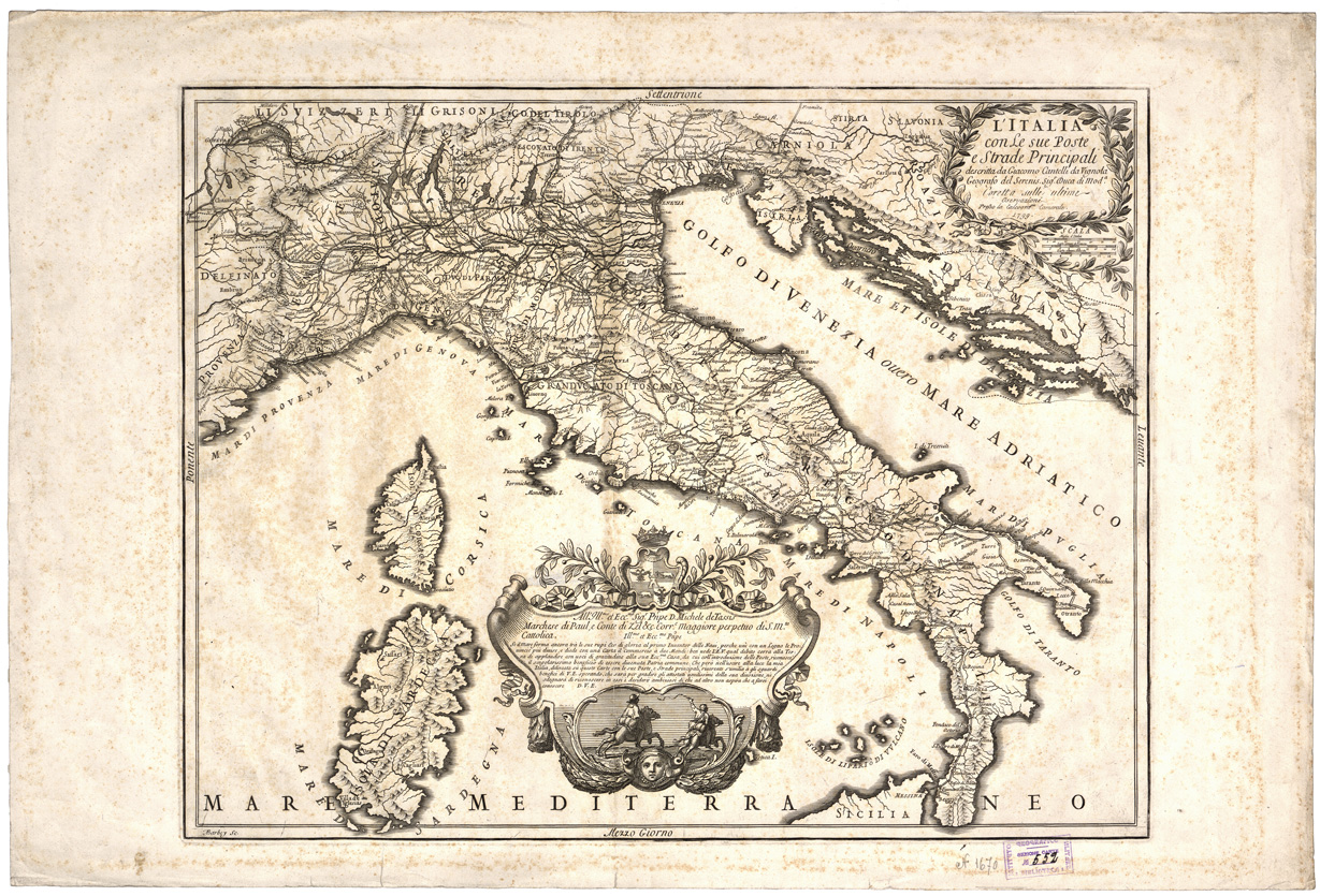 L'ITALIA CON LE SUE POSTE E STRADE PRINCIPALI...