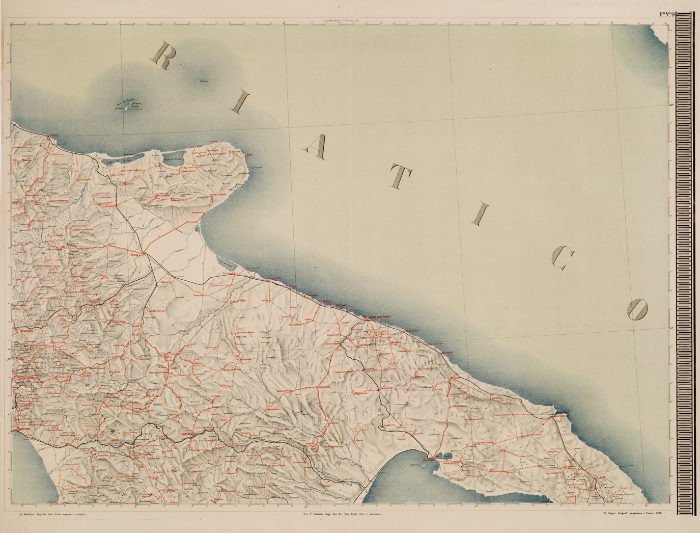 Il governo del Regno, considerando inadeguati i disomogenei lavori preunitari affidò nel 1872 all´Istituto Topografico Militare (il quale assunse l´attuale denominazione nel 1882) l´esecuzione del progetto di rilevamento generale del territorio dello Stato e della formazione della nuova Carta Topografica d´Italia alla scala 1:100000. L´Istituto, formatosi dalla fusione dell´Ufficio Tecnico del Corpo di Stato Maggiore del Regno Sardo con gli Istituti e gli Uffici topografici e cartografici dei diversi stati esistenti nella penisola prima che si compisse la sua unità politica, ereditò il materiale scientifico e cartografico preunitario caratterizzandosi di fatto come il depositario e continuatore della scuola e della tradizione cartografica nazionale.