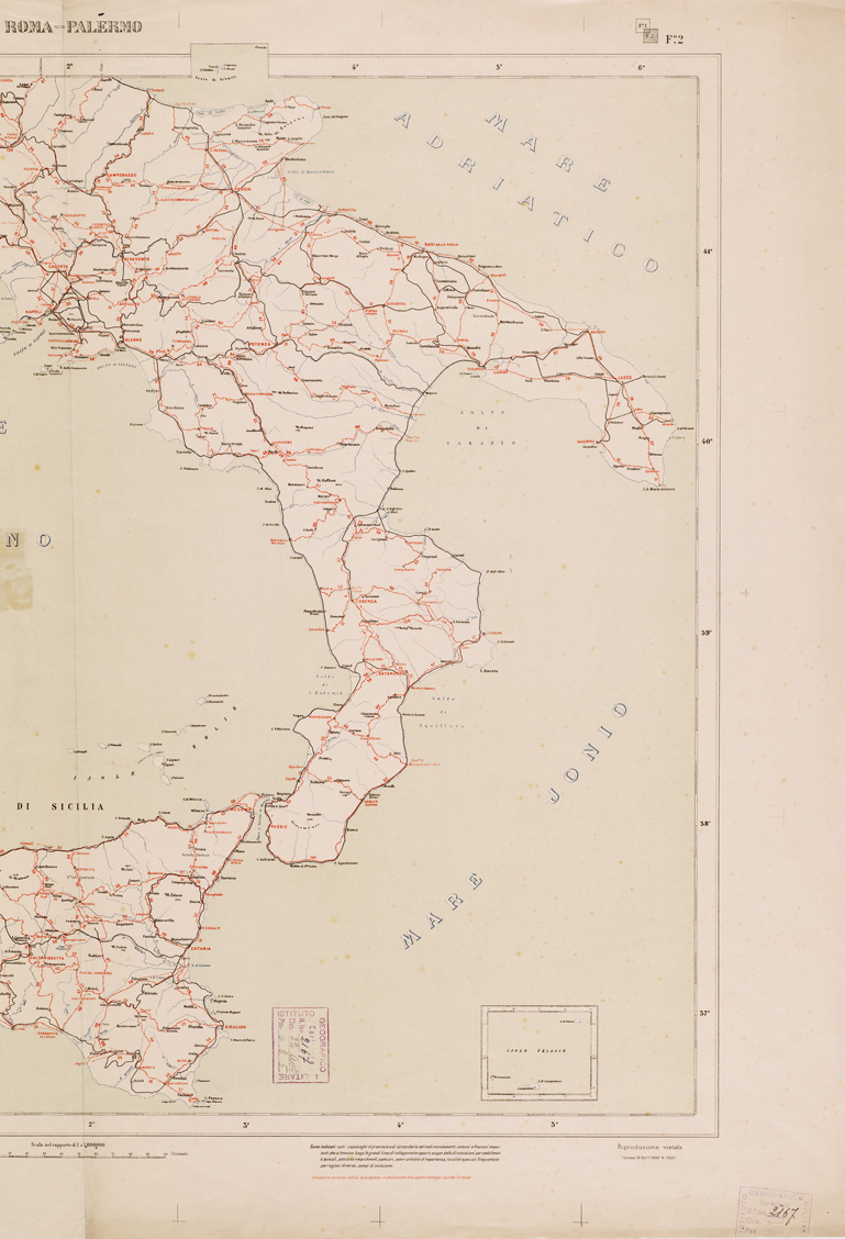CARTA ITINERARIA SPECIALE D'ITALIA CON Tavola POLIOMETRICA - Foglio 2 - Roma-Palermo