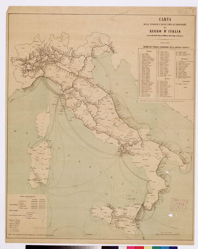 CARTA DELLE FERROVIE E DELLE LINEE DI NAVIGAZIONE DEL REGNO D'ITALIA...