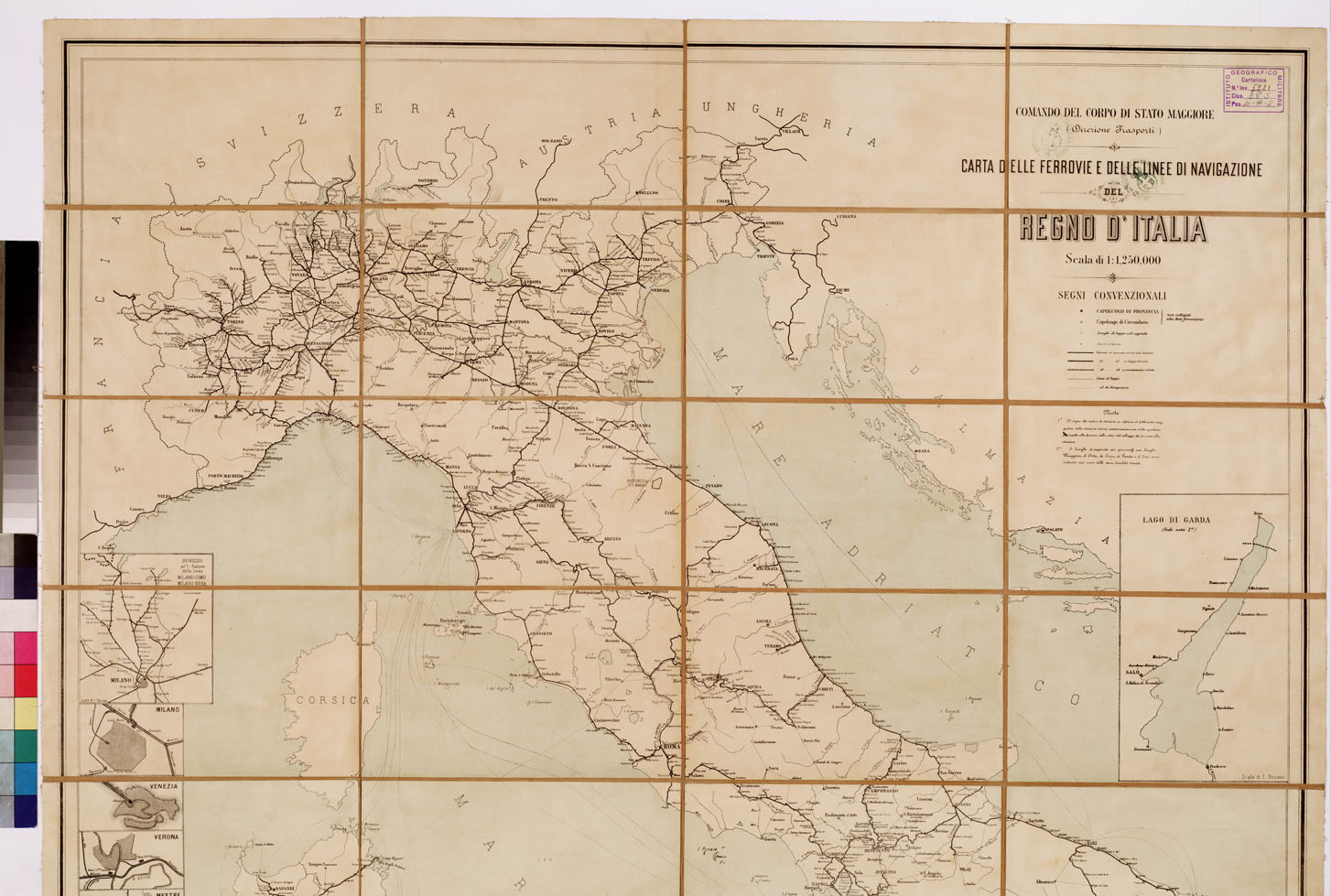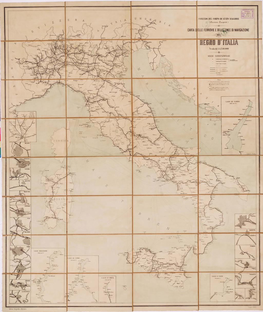 CARTA DELLE FERROVIE E DELLE LINEE DI NAVIGAZIONE DEL REGNO D'ITALIA
