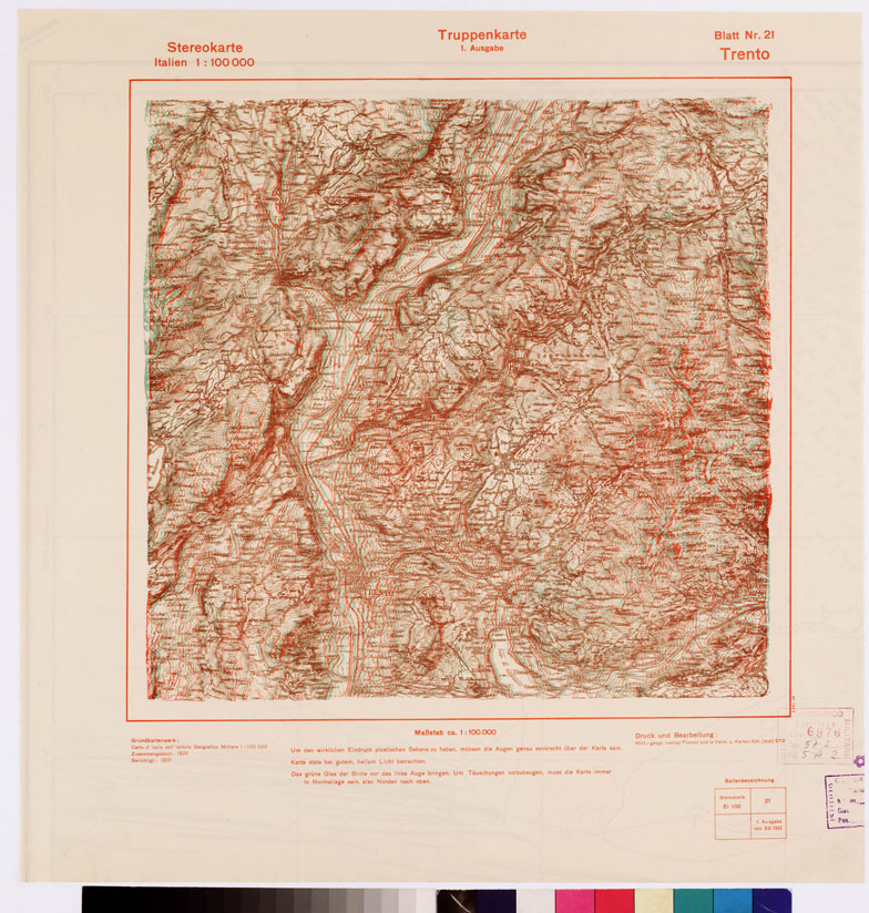 TRUPPENKARTE - STEREOKARTE - (CARTA STEREOSCOPICA PER USO MILITARE) - Foglio 21 - Trento