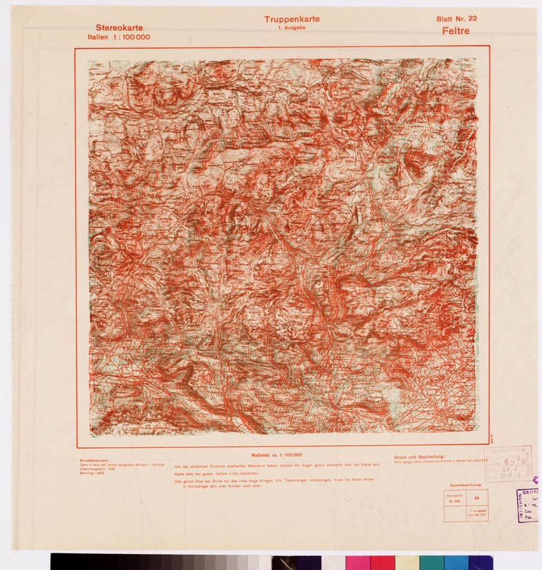 TRUPPENKARTE - STEREOKARTE - (CARTA STEREOSCOPICA PER USO MILITARE) - Foglio 22 - Feltre