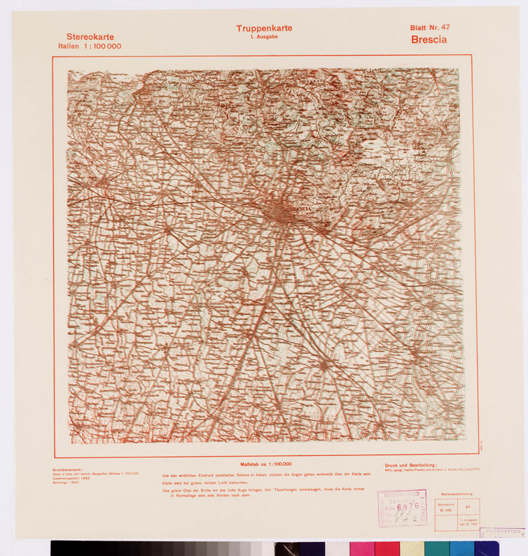 TRUPPENKARTE - STEREOKARTE - (CARTA STEREOSCOPICA PER USO MILITARE) - Foglio 47 - Brescia