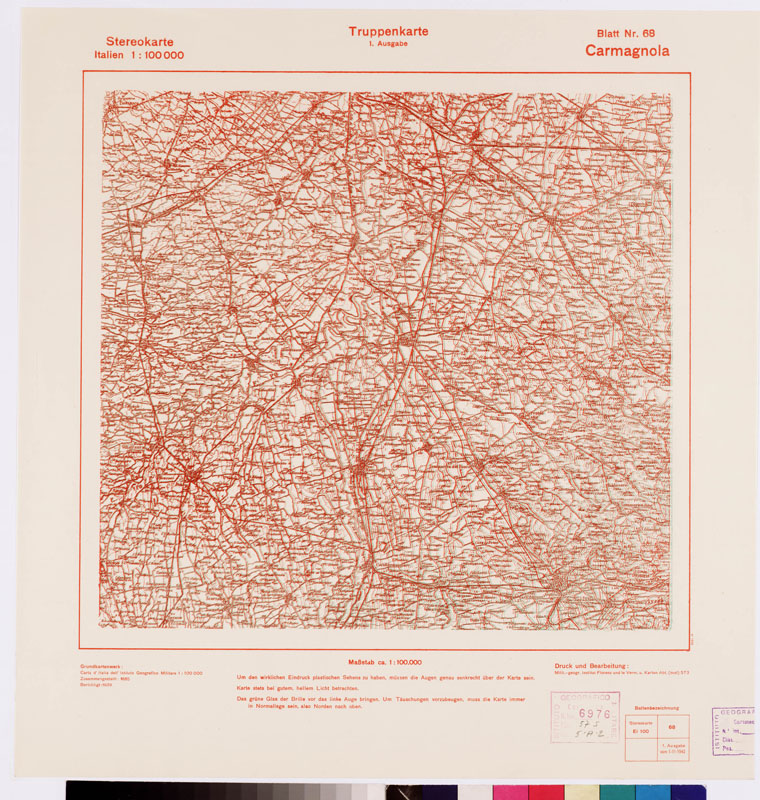 TRUPPENKARTE - STEREOKARTE - (CARTA STEREOSCOPICA PER USO MILITARE) - Foglio 68 - Carmagnola