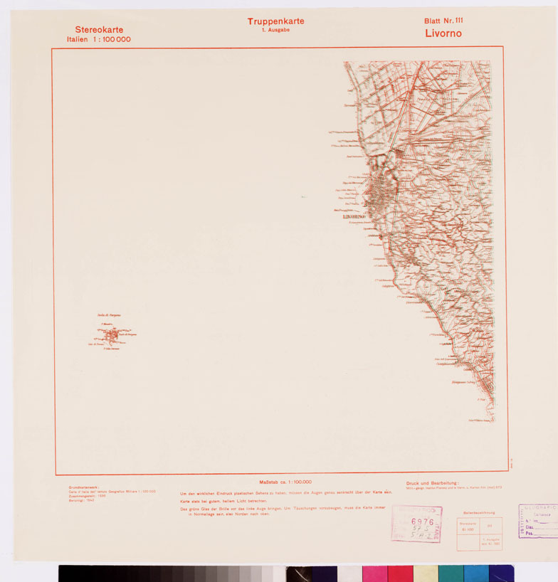TRUPPENKARTE - STEREOKARTE - (CARTA STEREOSCOPICA PER USO MILITARE) - Foglio 111 - Livorno
