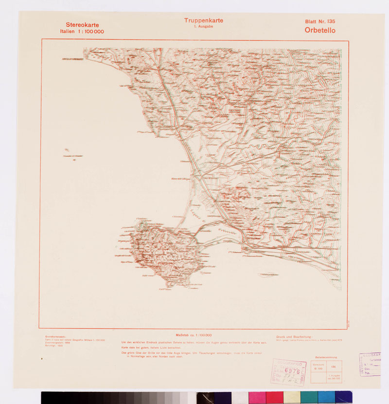 TRUPPENKARTE - STEREOKARTE - (CARTA STEREOSCOPICA PER USO MILITARE) - Foglio 135 - Orbetello
