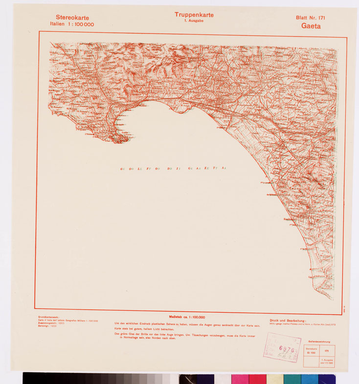 TRUPPENKARTE - STEREOKARTE - (CARTA STEREOSCOPICA PER USO MILITARE) - Foglio 171 - Gaeta