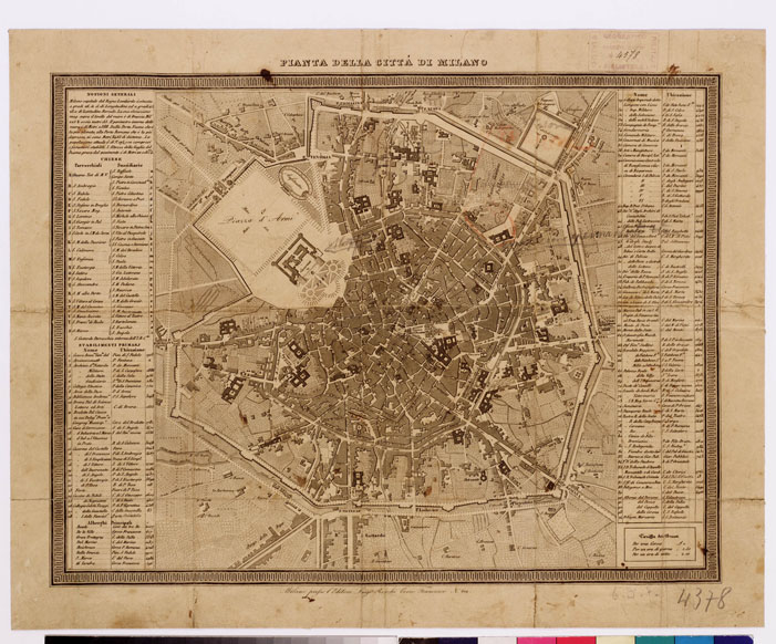 "Rappresentazione orografica planimetrica. Ai lati la spiegazione dei luoghi. Milano, presso l'Editore Luigi Ronchi."