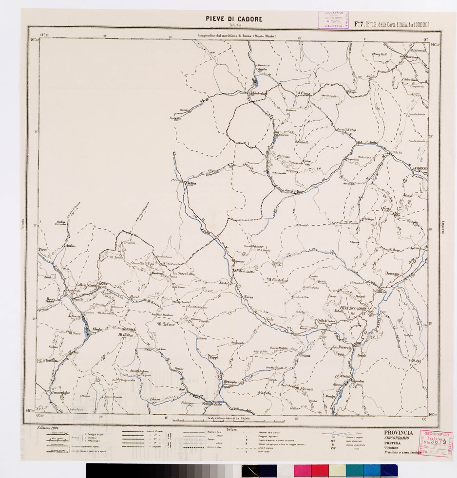 "... FOGLIO 12 DELLA CARTA D'ITALIA 1:100.000). Autore ed editore I.G.M. diFirenze. Rappresentazione orografica planimetrica."