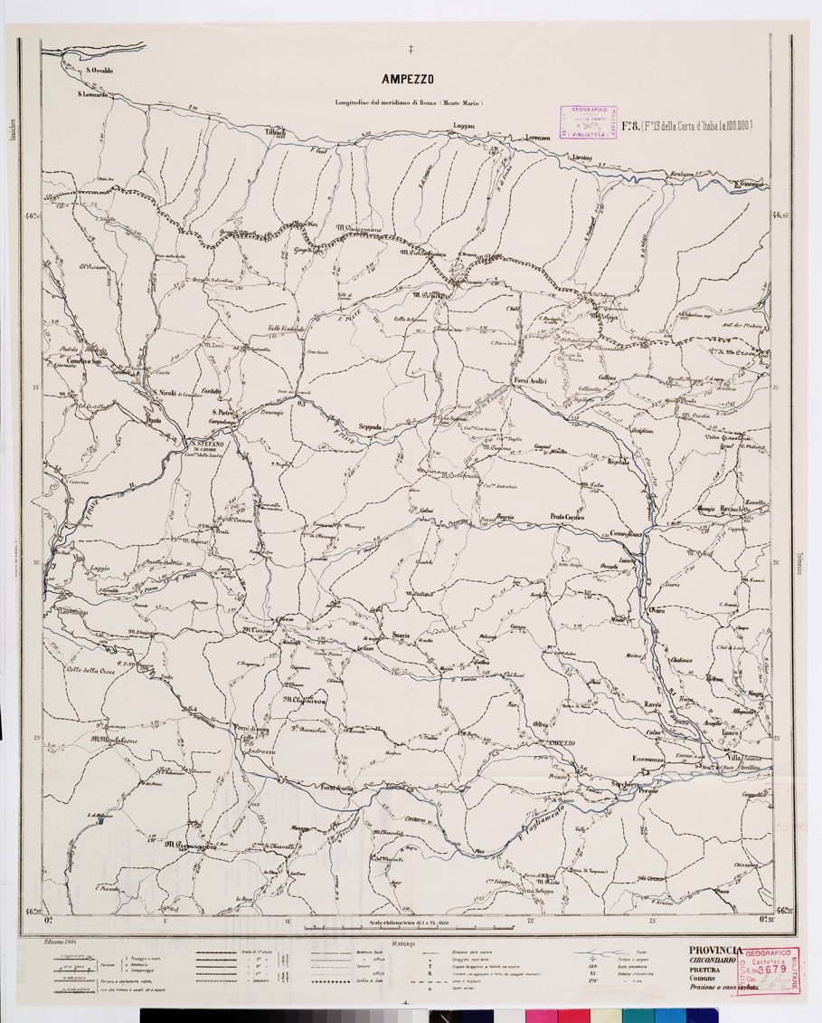 Il governo del Regno, considerando inadeguati i disomogenei lavori preunitari affidò nel 1872 all´Istituto Topografico Militare (il quale assunse l´attuale denominazione nel 1882) l´esecuzione del progetto di rilevamento generale del territorio dello Stato e della formazione della nuova Carta Topografica d´Italia alla scala 1:100000. L´Istituto, formatosi dalla fusione dell´Ufficio Tecnico del Corpo di Stato Maggiore del Regno Sardo con gli Istituti e gli Uffici topografici e cartografici dei diversi stati esistenti nella penisola prima che si compisse la sua unità politica, ereditò il materiale scientifico e cartografico preunitario caratterizzandosi di fatto come il depositario e continuatore della scuola e della tradizione cartografica nazionale.